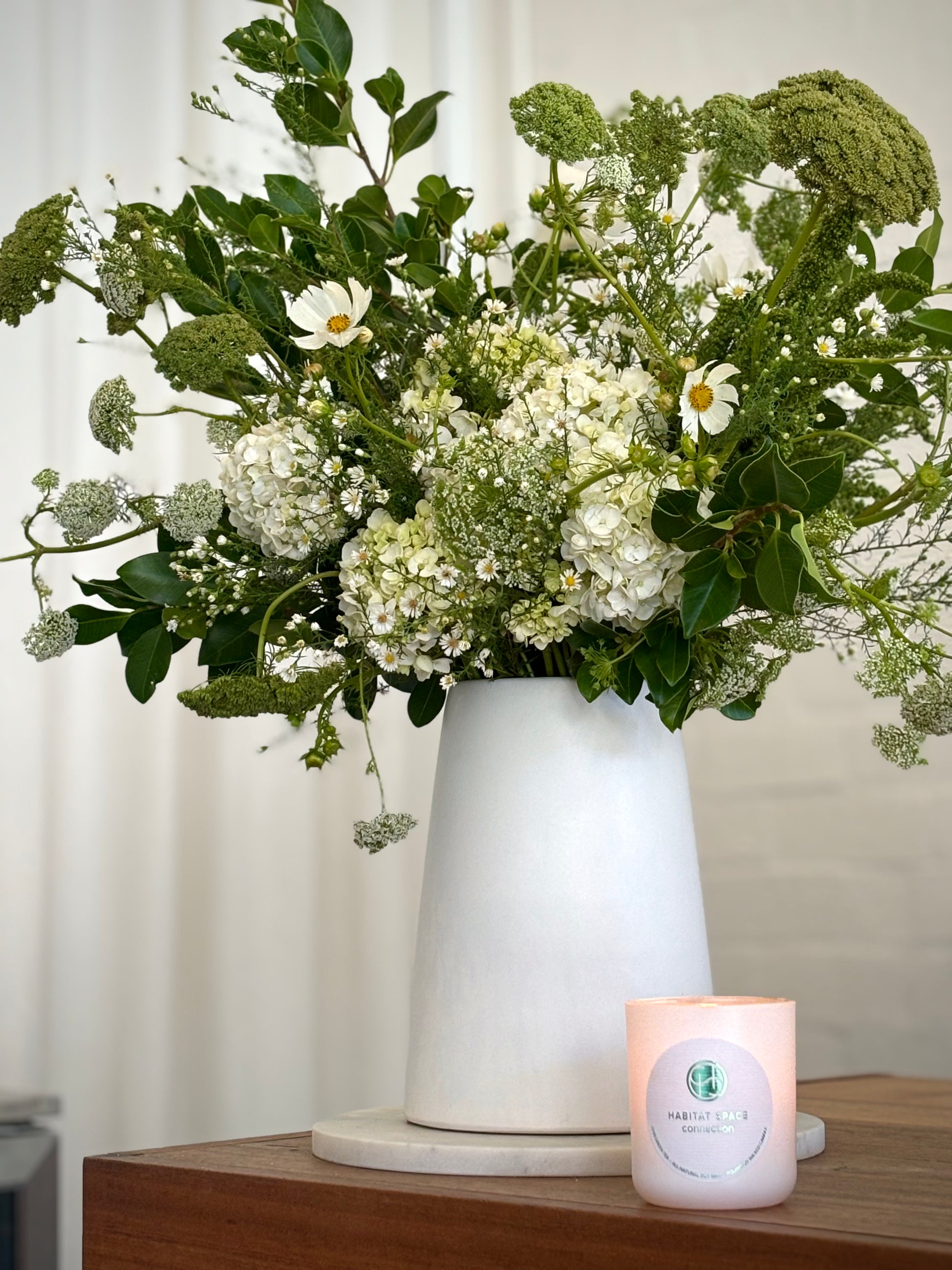 - Each arrangement will arrive in a vase complimentary to both your space and the floral design. Fresh locally grown, seasonal flowers and foliage